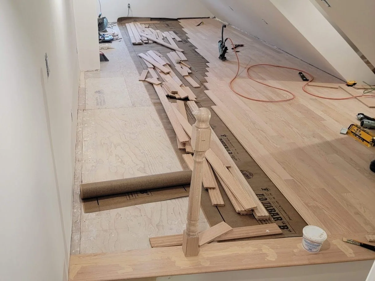 Installation of new flooring for a renovated attic: